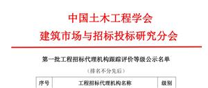 第一批工程招标代理机构跟踪评价等级名单公告
