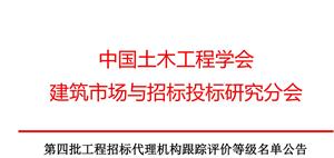 第四批工程招标代理机构跟踪评价等级名单公告