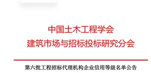 第六批工程招标代理机构企业信用等级名单公告