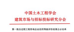 第一批全过程工程咨询企业信用等级评价结果公示名单