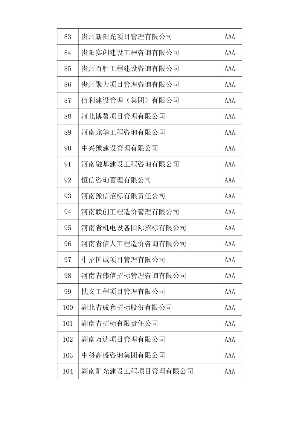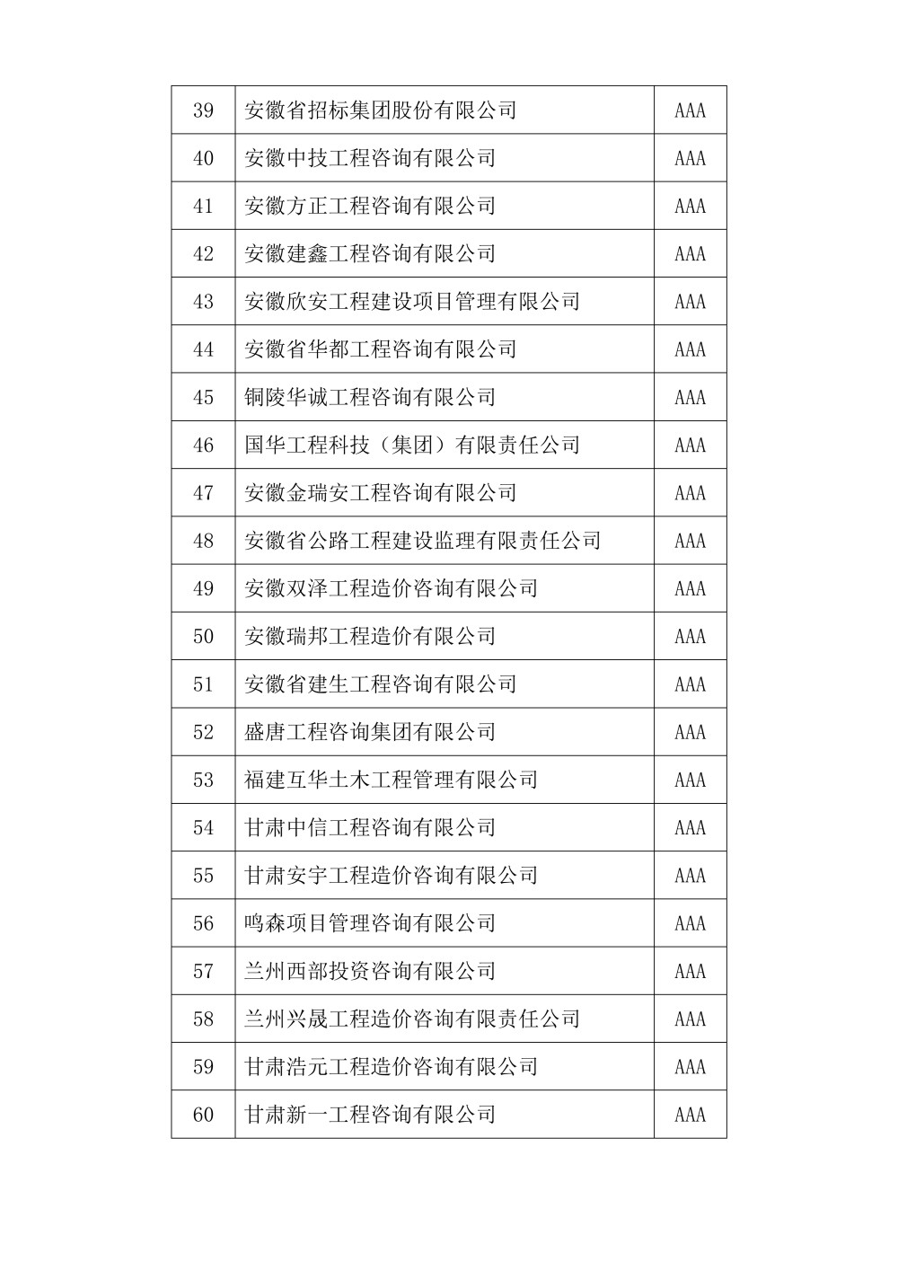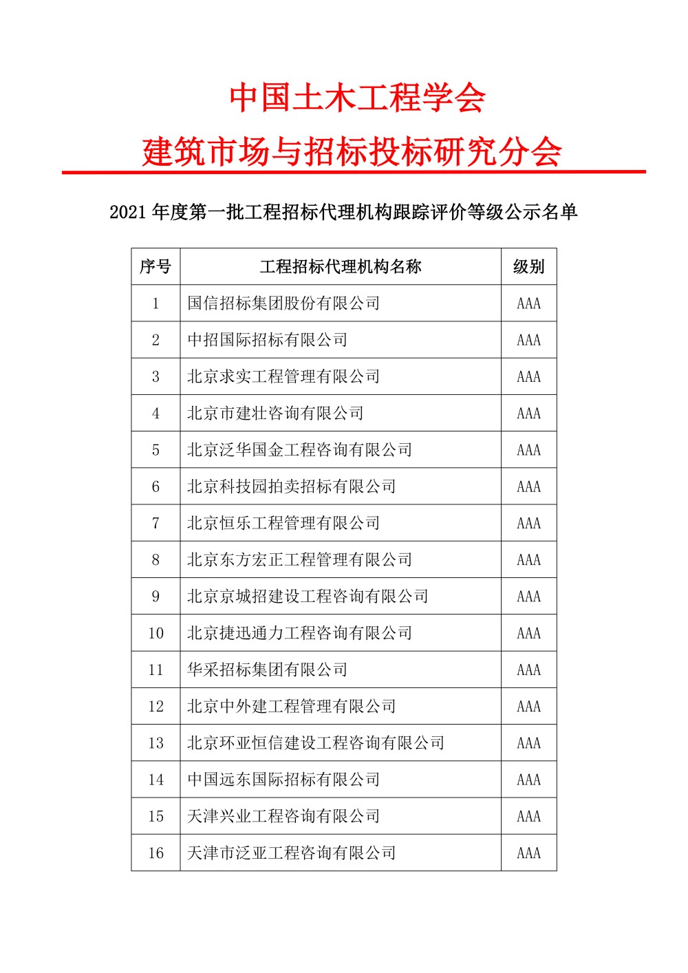 2021 年度第一批工程招标代理机构跟踪评价等级公示名单