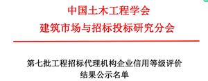 第七批工程招标代理机构企业信用等级评价结果公示名单