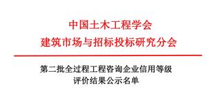 第二批全过程工程咨询企业信用等级评价结果公示名单